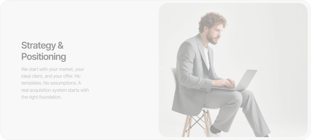 We starten met jouw markt, jouw ideale klant en jouw aanbod. Geen template. Geen aannames. Een acquisitiesysteem begint met de juiste basis.